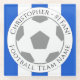 Your own name plus the football team you support on a coaster. Blue and white stripes colour theme.