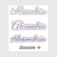 Decorate your laptop, water bottle, case, or other items with three custom stickers featuring your name in 3 different purple handwritten script fonts. Add your name in the sidebar. Select "matte white" in the sidebar to make the transparent background around your name white.