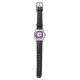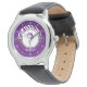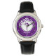 Wild zebra print gymnastics wrist watch with in purple. A gymnast silhouette poses inside a circle and there is a "polka-dot" banner for contrast. Add your own name before ordering! Additionally, use the "customise it" button for more options, including a different font!