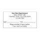 This is a template for a doctor's office appointment reminder stamp. Your Next Appointment is at the top. The days of the week are next. (Shown: Mon Tues Wed Thurs Fri) You can circle the day of the week for your patient's convenience. Next, there are lines for the date and time of the appointment. Lines of the text for the doctor's name and telephone number. All text can be edited or deleted.