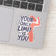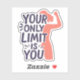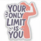 A motivational sticker for students and female entrepreneurs. Purple text and the quote: Your only limit is you. A graphic of a strong woman.