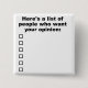 Have you been looking for funny buttons for your shirt or backpack on the Internet? Every day, we’re looking for, designing, and posting the funniest buttons for men and women, and all of them are customisable buttons with your choice of styles, colours, and prices. Whenever we find cool graphics, funny quotes, and weird sayings, we slap them onto what we think is the Internet’s biggest selection of hilarious badges and pins… with hundreds and hundreds to choose from. We’ve been told that we go a little too close to the edge when it comes to insulting, rude and sometimes offensive stuff -- but why don’t you decide for yourself. The giant variety makes it easy to find a great gift idea or something for yourself. Father’s Day, Mother’s Day, Birthdays, Valentine’s Day, Anniversaries, or just because gifts!