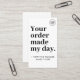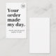 Make your customers smile with this “Your Order Made My Day” thank you card, perfect for small businesses, online shops, and handmade brands. Designed with a clean and modern style, it adds a warm, personal touch to every package.