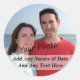 Add your photo and add your own text easily to these stickers. Great to show and share your love with upcoming save the date for weddings, engagements, anniversary and birthday parties, reunions, and special events, etc. Make your custom stickers and envelope seals today! Shown is the popular round shape sticker.