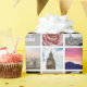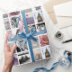 Wrap your gifts in the most personal way with this custom gift wrap. Easily replace the example photos with photos of your own. There are a minimum of 51 different photo squares (up to 69 if you replace the coloured squares with photos) - more than enough to create beautiful paper. The grey squares can be changed to whatever colour you choose by clicking the 'Customise' button, then scroll to the bottom and select a new colour from the 'Background Colour' selection tool. Choose a photo a week and span your whole year, choose many photos from one special occasion, or get creative with your Instagram photos! The example paper also has templates for custom wording to place inside the solid colour squares - the sample shows different custom wedding or engagement messages, but you could personalise with monograms, first names, love notes, baby birth details - the ideas are endless. Just use the easy, provided templates!
