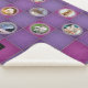 A vintage look quilt with the effect of pretty patches divided by stitching, plus eight customisable pet photo frames to create a unique collage. Each picture will be framed by an embroidery stitch effect circular border (note: you can add square photos, they will automatically show as circles through the round apertures). The patchwork style features purples and a splash of magenta. The perfect finishing touch is to type in your choice of name into the text input box and it will appear on the name label.