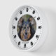 Personalizable photo template for pet owners featuring Destei's stylish paw design clock face that can be changed to any colour. While the sample template has a black colour clock face, you can choose a clock face colour that best compliments your custom photograph. There is also a personalizable text area on this design.