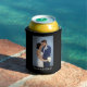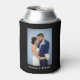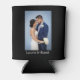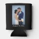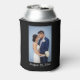 Your favourite photo and two lines of custom text highlight this personalised wedding beer can cooler.