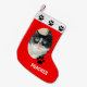 This adorable Christmas stocking is just for your kitty cat. Three paw prints run along the top of the stocking on a white background. Below the paw prints is a place for a photo of your cat with a red background and paw print along the bottom. You can customise the stocking with the name of your sweet kitty. A great stocking for cats at Christmas. Copyright peachesthetuxedocat