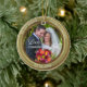 An elegant Christmas ornament featuring your own custom photo framed by a stylish vintage green gold design. Beautiful for a first Christmas together or other special extra festive Holiday celebration. Although created in 2020 in relationship to the pandemic, you can customise the theme.