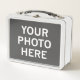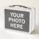 This is a standard metal lunchbox that appears to work just fine. We designed this box ourselves with an uploaded photo and custom text on the front and back. It looks absolutely beautiful except the front of the lunchbox is not centered like it shows in the photo. The print borders don't align with the inset flat part of the box where the preview photo online showed it perfectly centered in there. The back looks nice and centered though.