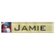The product was just like it was in the pics, everyone at work loves it! Came on time and it was neatly packed. Bold and Clear. My name can be seen from far and it matches in color.
