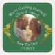 Your Photo, Save The Date, Emerald Green & Gold Square Sticker