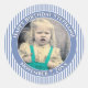 Your Photo Simple Stripes Pattern Blue/White Classic Round Sticker