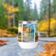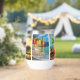Thermal tumbler featuring your custom logo, photo and texts on a 5 photo grid. Nice for a travel agency or a personal road trip.