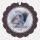 Perfect for grandparents, this Christmas ornament features your own photo with personalised name and year and a dusty plum accent trim. This ornament includes a hazy effect around the edges of the photo and works with a variety of coloured backgrounds, where the subject of your photo is just slightly above centre, with a good amount of space between the subject and the edge of your photo; the closer your subject is to the edge of your photo, the more it will fill or over-fill the photo area of the ornament. And you can customise this ornament right on the product page!