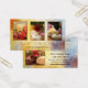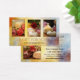 Business card template featuring your own 4 photos (optional): 3 on the front and one on the back. The framing is a gold stylised design on a colourful festive watercolor background. The front text is a separate image and can be deleted if you do not need it or prefer custom text. Beautiful for a wellness or spa, a massage therapist, retailer selling luxury articles or any professional looking for a portfolio option.