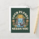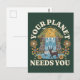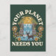 "Your Planet Need You" with a landscape with a waterfall, flowers, deer, and trout. Great for Earth Day.