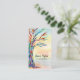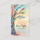 This unique business card is decorated with a mosaic tree in bright colours on a watercolor background.