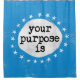 Bold text reading "your purpose is" is centred against a blue background. The black text sits on a white circle with white stars around it, providing a playful contrast against the colourful backdrop.