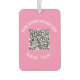 Choose Colours and Font Air Fresheners with Your Special QR Code Info and Custom Text Personalised Modern Car Air Fresheners / Gift - Add Your QR Code - Image or Logo - photo / Text - Name or other info / message - Resize and Move or Remove / Add Elements - Image / Text with Customisation Tool. Choose / Add Your Favourite Background and Text Colours / Font / Size ! Please see my others projects / designs. You can also transfer this designs to more than 1000 Zazzle products. Good Luck - Be Happy :)