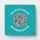 Custom Font and Colours - Design Your Own Personalised Plaques with QR Code Scan Info and Name Website or Custom Text Professional Design Business Promotional or Modern Personal Desk Accessories / Desk Signs Gift - Add Your QR Code - Image - Photo or Logo / Name - Company / Website or E-mail or Phone - Contact Information / Address / More - Resize and Move or Remove / Add Elements - Image / Text with Customisation Tool. Choose / Add Your Favourite Background and Text Colours / Fonts / Size ! Please see my others projects / designs. You can also transfer this designs to more than 1000 Zazzle products. Please use your logo / QR code - image that does not infringe anyone's Copyright ! Good Luck - Be Happy :) by MIGNED