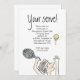 A cartoon-style illustration of a happy tennis player serves up a light-hearted invitation to a tennis party.