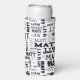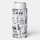 Create a very extremely personalised can sleeve. Your custom name appears all over this tall foam can wrap in a collage of different fonts and lettering styles. Black lettering is set against a white background.