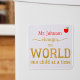 Personalised "YOUR TEACHER changes the world one child at a time" thoughtful typography quote in red, gold and white. Make a thoughtful keepsake thank you gift for your teacher! ---- Please note that the background colour is changeable (after selecting CUSTOMIZE option).
