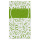This design is a green and white random number pattern with milestone number 70 repeated in varied sizes and angles in an all-over print. There is a green band and a gift tag, printed on the front, with text templates so you can easily personalise the design.