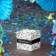 Easily personalise this black and white 70th birthday party theme with the provided templates.