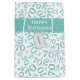 This design is a teal and white random number pattern with milestone number 70 repeated in varied sizes and angles in an all-over print. There is a teal band and a gift tag, printed on the front, with text templates so you can easily personalise the design.