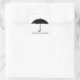 Show your style with these customisable umbrella stickers. This design features an open black umbrella on a default white background. There is a spot at the bottom to add your own text. The default text is in black print in a non cursive font. Just hit the Personalise button to edit or delete the text, or the Customise button to change the font, text colour, or background colour. This design can be transferred to other items in the Zazzle marketplace. Makes a great decoration or gift item for a lover of umbrellas, parasols, rainy weather, and classic fashion accessories.