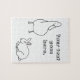 Cute outline drawing of duck looking at bunny rabbit, with a template placeholder for your text, is printed on custom puzzles. The puzzles are a fun choice for Easter, and the animals and the letters can be coloured in! Thank you for shopping at CherylsArt on Zazzle.