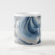 This is a large blue, silver and white mug with a pretty luxe design. The design was created with artificial intelligencece art. The design features lovely blue marble swirls and faux silver glitter. The mug is a jumbo mug with a space on each side for text. There are two spaces on the mug that have Your Text Here on them. You can put text there. When you click the Personalise button you can add text to the mug. This is a ceramic mug that holds 20 ounces. The mug can be printed with your text on it. The mug is microwave and dishwasher safe. These jumbo mugs meet the FDA requirements for food and beverage safety. These personalised coffee mugs will make perfect unique gifts for friends, family and coworkers.