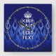 Your Text on Keep Calm on Navy Blue Racing Flames Square Wall Clock