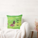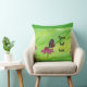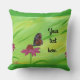Pretty monarch butterfly throw pillows. The design is a spring like painting of a monarch butterfly enjoying a pink flower. The background is wispy brushstrokes of yellow and green. There is a template placeholder on each side, for you to type in your text. There is a border of light spring green at the top and the bottom of the painting design. Thank you for shopping at CherylsArt on Zazzle.