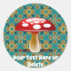 Your Text Retro Teal Green & Red Amanita Mushroom Classic Round Sticker