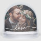 Custom photo snow globe with fully editable text overlay, designed to showcase two personal photos—one on the front and one on the back—making it a perfect keepsake for weddings, anniversaries, engagements, or romantic celebrations. The elegant script text can be personalised to include names, dates, or a meaningful word or phrase, creating a one-of-a-kind display. When shaken, the globe fills with swirling snowflakes that beautifully highlight your chosen images. This personalised snow globe is a heartfelt gift idea for couples, newlyweds, or loved ones, combining sentiment, customisation, and decorative charm in a timeless design.
