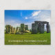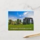 Get whisked away to Stonehenge with this fully customisable postcard. This card features the mysterious stone circle monument on a bright sunny day, with vibrant green grass. The impressive prehistoric monument is found in Amesbury, Wiltshire, England. The archaeological site remains a popular travel destination for fans of world heritage sites, ancient ruins and burial grounds, and English history. The reverse side of the card is default light blue with a tiny Stonehenge accent picture at the bottom centre. There is a spot to personalise the card with your own text, the default text reads Stonehenge, Wiltshire England in white print. Just hit the Personalise button to edit or delete text, or hit the Edit further button to change the font, font colour, or reverse side colour. Great for travelers, lovers of England, Europe, ancient monument sites, scrapbooking, mementos, and dreamy travel postcard aficionados.