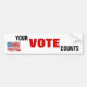 Help remind everyone to vote on election day with this Your vote Counts bumper sticker.