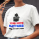 Image of a black ballot box with the words "Your Vote" in red typeface under it. "Matters" is beneath that in larger blue letters with "Just Ask HIllary" in smaller, black font at the bottom of the image. The style shown is crew neck, but this democratic t-shirt is available in many styles, sizes and several colours.