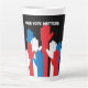 Great mug to remind neighbours, family and friends to vote in upcoming elections. Patriotic red white and blue raised hands on black background with "your vote matters" text
