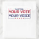 The image shows the lettering "YOUR VOTE YOUR VOICE" in clear, modern typography. The message emphasizes the importance of elections and political participation.