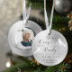 Beautiful memorial photo ornament. Our design features a faux silver background with the words" Your Wings Were Ready But Our Hearts Were Not" written in a beautiful script and serif font combination. Two cardinals are beautifully incorporated into the design, Customise with name, year born and year passing. The reverse side features a place to add loved ones special photo along with a silver faux background, cardinal, name, and year born and year passed. Design by Moodthology Papery