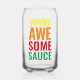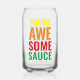 With the compliment, "You're Awesomesauce", styled in a tall block font with four bold hot pepper colours on a solid black background, this can glass is the perfect way to toast someone special with on World Compliment Day (March 1) -- or any day that you feel like making someone's day, at a party, or even at the office!