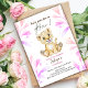 You're gonna hear me roar! First Birthday Party invitation is a cute design with lion cub and tropical pink colour leaf for baby girls