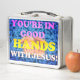 YOU'RE IN GOOD HANDS WITH JESUS! is an image provides great inspiration to Christians. This image is the surest way to let others know who your Saviour is!...And who you place your security in the hands of! Order your copy of the lunch box with this beautiful religious image on it today!