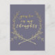 NewParkLane - Elegant purple / mauve sympathy postcard, with quote 'You're in my thoughts' in gold, brush script typography, and an elegant gold wreath.