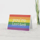 This card design is a grunge rainbow background, offsetting the white "perpetrator of geekery" text in a typewriter font.